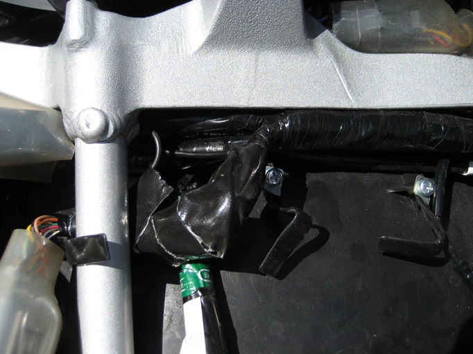 Photo with the wire cut and waterproof connectors used to connect the wires going to the switch. I have my switch mounted on the bottom of the switch housing on the right handle bar. |